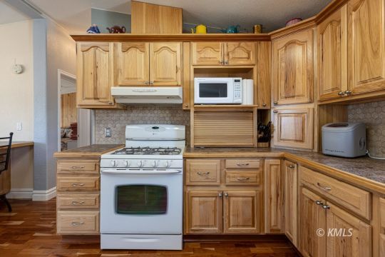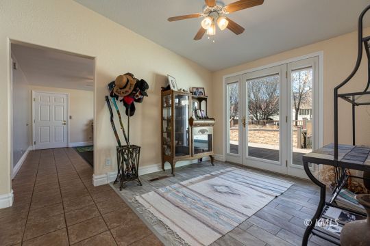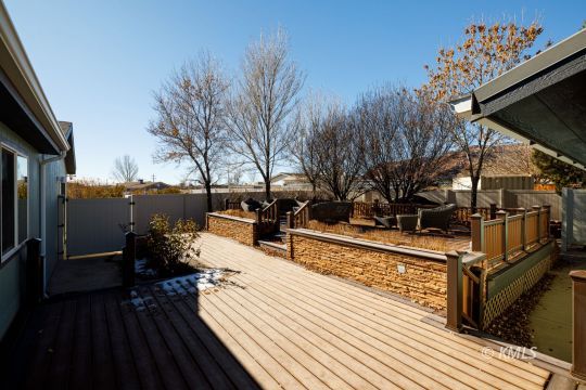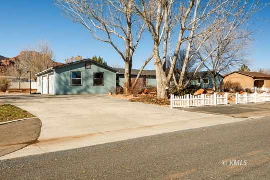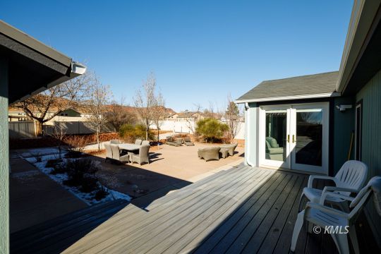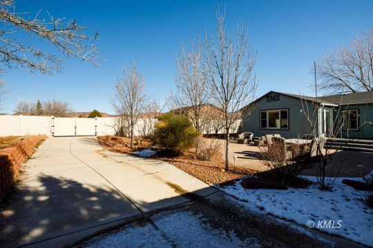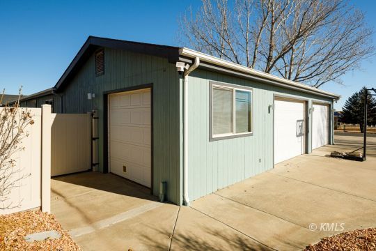 This beautifully renovated home highlights exceptional craftsmanship & thoughtful design, with seamlessly integrated, stick-built expansions on both ends of the manufactured home. The primary suite is accessed through an office featuring a custom built-in bookcase door, leading to the spa-like bathroom & a separate entrance to the bedroom. This bathroom offers a luxurious walk-in shower with nine shower heads, customizable zones, mood lighting, music, & a separate acoustic soaking tub. A walk-through closet connects the bath & bedroom. Multi-zone heating and cooling throughout the home! French doors open to immaculate outdoor living where stamped concrete patios, Trex decking, xeriscaping, & mature trees create a private, low-maintenance retreat. The upgraded kitchen features hickory cabinetry with soft-close drawers, hickory flooring, & birch wood floors throughout the living area. The 2nd living wing provides additional bedrooms & a den/family room with direct access to an oversized two-car garage with ample storage. The backyard has a separate shop surrounded by a stamped concrete patio, plumbed for gas and electricity-perfect for outdoor entertaining! (buyer to verify all)
